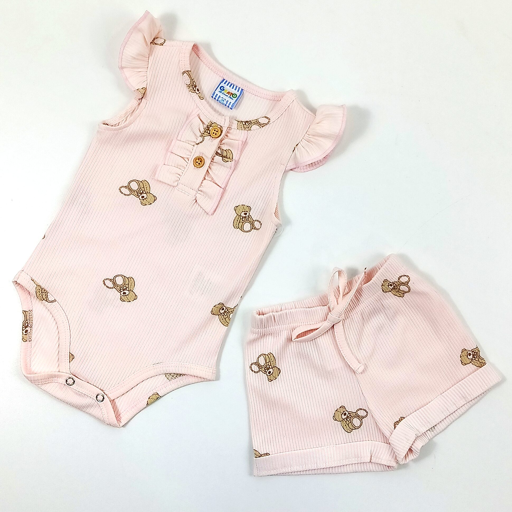 Body Osito-short algodon Rosa T: 6/9-9/12-18 cantidad