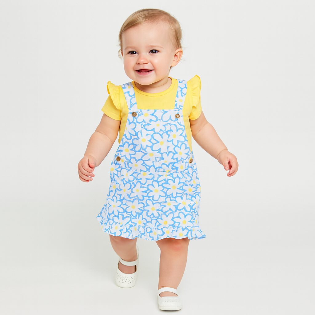 Overol niña flores + blusa amarilla cantidad